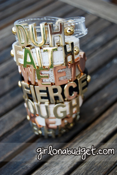 Although some may argue, $18 a bracelet isn’t exactly budget friendly (trust me I thought the same thing); let me put things into a comparative perspective: I have seen Forever 21 bracelets, at $12.80 and $14.80 a pop, yes people FOREVER 21 has bracelets that cost this much! I feel if I was going to buy a bracelet from Forever 21 for that much, I would rather put in a few more dollars to get: 1.) better quality 2.) ummm BCBG hello! But on the real, I only paid full price for maybe 2 of these bracelets. BCBG offered a 20% discount and free shipping, so I was able to get more at a discount. Steal! 🙂