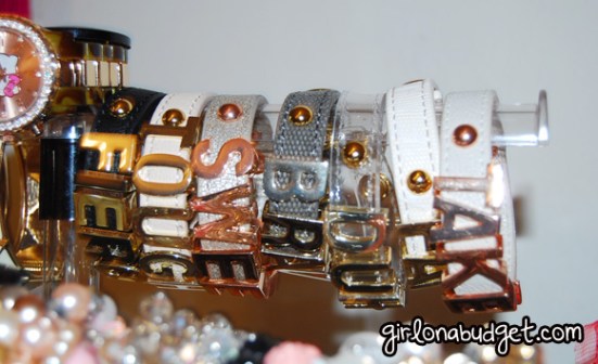 The only disadvantage at the time of this writing, is that these bad boys are HARD to find! I mean you can check every nook and cranny of the internet and all the ones you want most likely have disappeared from the face of the Earth. (I wanted “Dream” and can’t find it anywhere!) And BCBG is not going to be restocking these because rumor has it (again this is just what I heard), is that next month in June, they are going to be re-releasing these bracelets but allowing us to CUSTOMIZE the bracelets to whichever saying we want. We get to choose the band/color we want, and the phrase we want. If you notice in these pictures, they have two “stopper” button studs; one in front of the word, and one at the end of the word, to prevent the letters from moving around or falling off the bracelet. I really do hope the rumor is true and they bring these little gems back into the market, they are a hot seller that’s for sure! I would love to be able to customize my own!