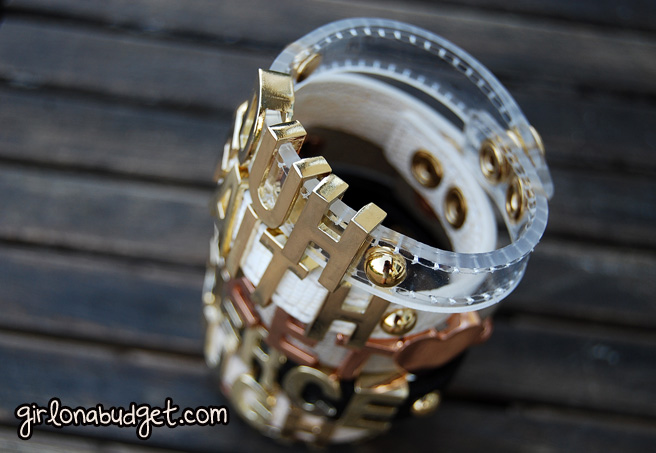 But I digress, I will be fair and put in the next closest dupe I can think of, which are these magnetic bracelet cuffs (see below) from Charlotte Russe at $5 a pop (all of Charlotte Russe’s accessories are only $5 right now!). They only have “LOVE” and “SINGLE” unfortunately but nonetheless I think they are still kinda cute, especially how each letter has some bling. The only gripe I have is that it has a weird shape right out of the box and I thought wearing it on my wrist will loosen the shape up a bit so it conforms more to my arm, but nope, still a weird elliptic shape and it doesn’t sit right on my wrist. Phooey. But I DO love the magnetic closure, definitely makes putting bracelets on yourself a breeze and it’s a sturdy/strong magnet too!