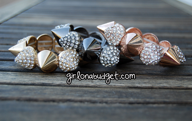 Stunning spiked bracelet. Truly dazzling and eye catching. The spikes and the Cheap rhinestones on it is really distinctive. Wow!